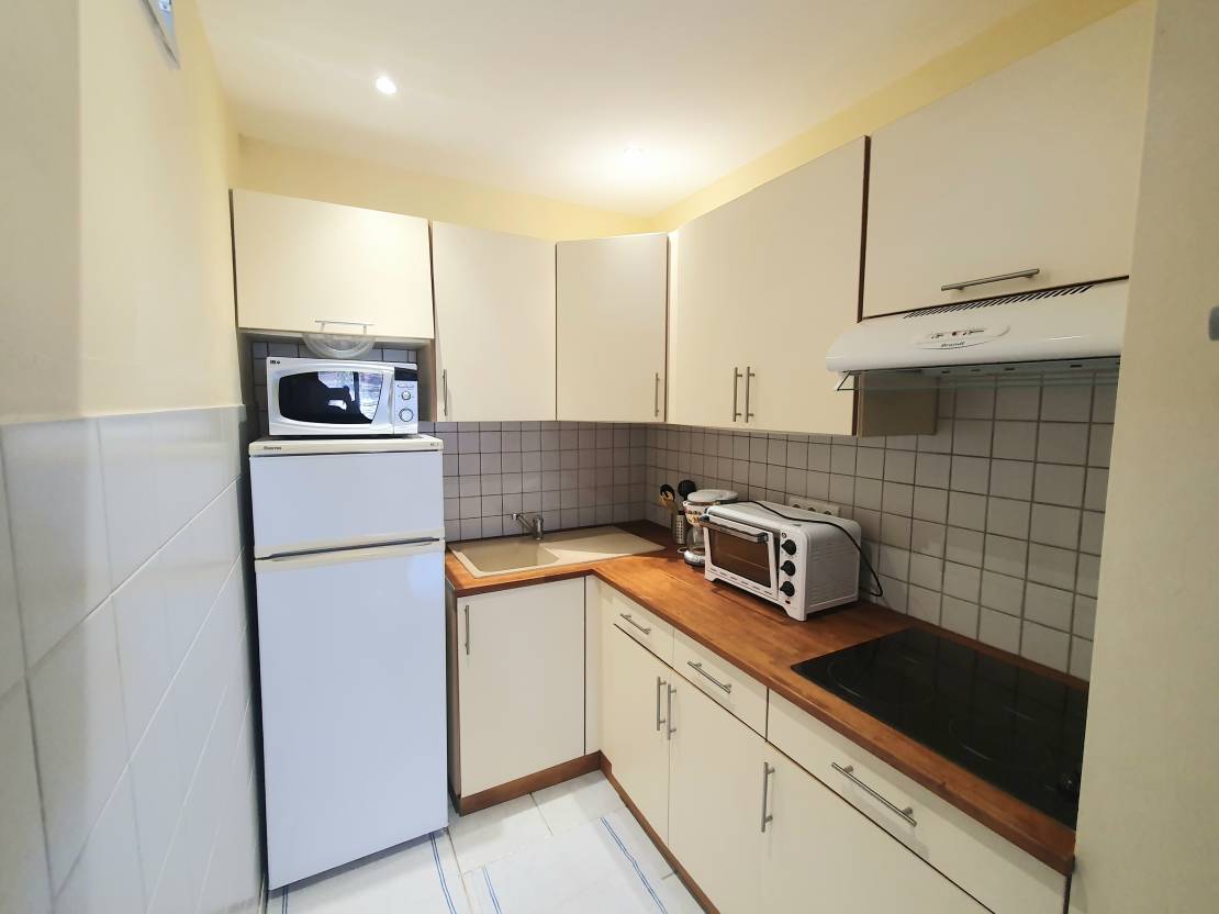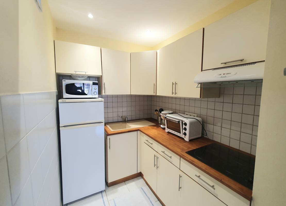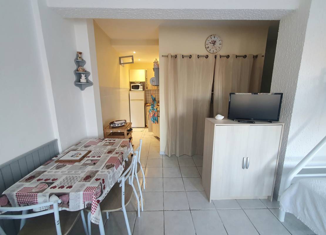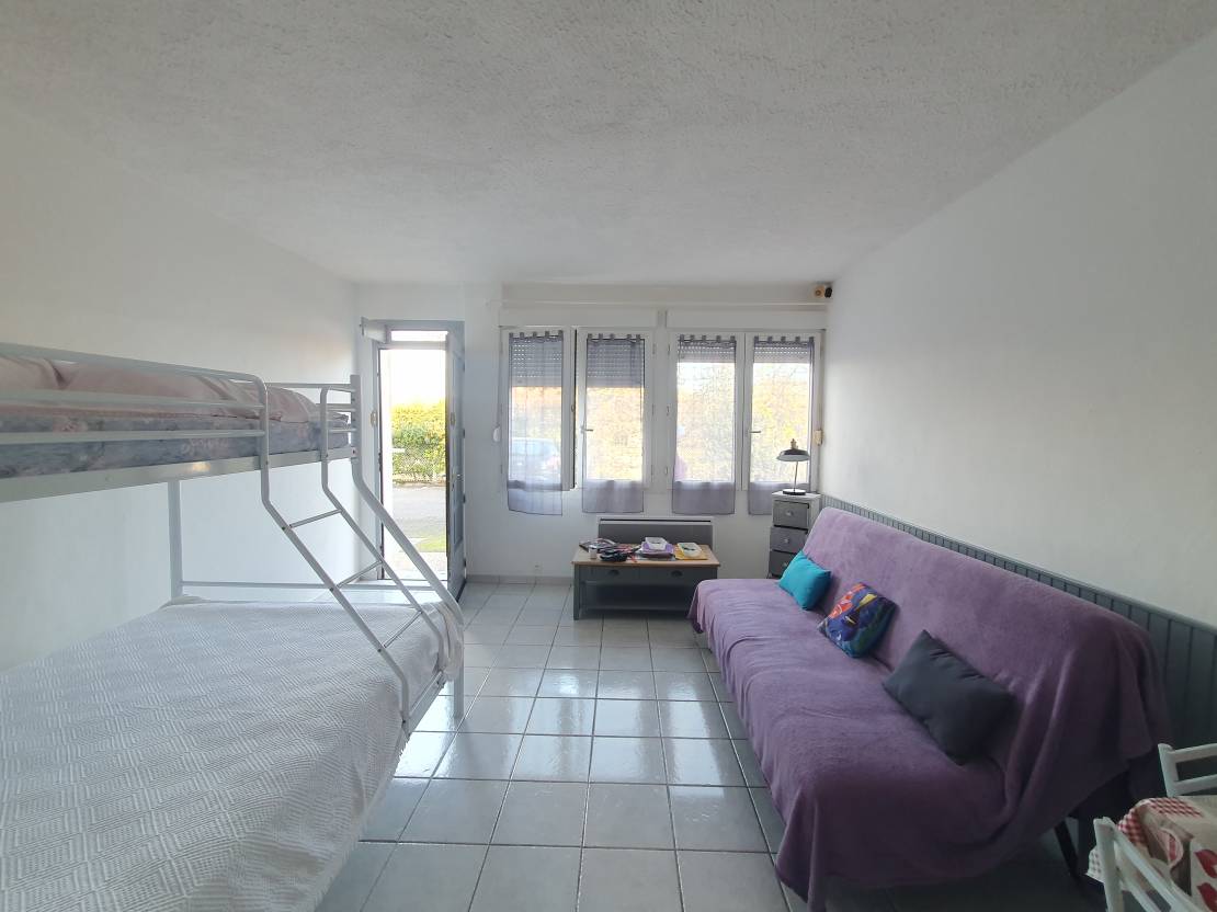 Descriptif: Dans une copropriété avec piscine et espace vert, vous trouverez ce studio refait pouvant accueillir 4 couchages grâce à sa vaste pièce de vie.